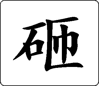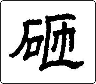 形声字。石表意,像山崖下有块石头,表示用石头之类的重物撞击;匝(zā)表声,匝有满义,表示被砸之物满身破裂。本义是用重物撞击。