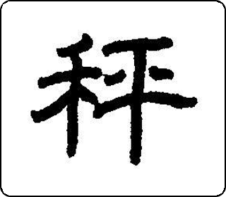 会意字。“禾”像谷类植物,表示衡量谷物轻重的器具;“平”指不倾斜,表示秤杆平称出的重量才准确。本义是衡量物体轻重的器具。
