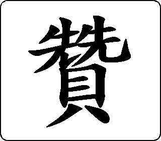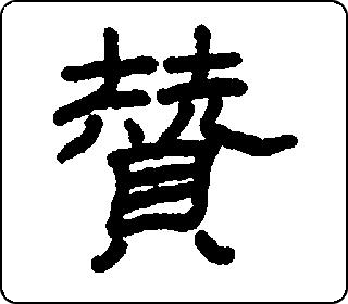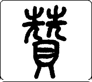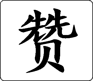 会意字。“貝”(贝)像贝壳,古代用作钱币,两个“先”表示向前、进见;合起来表示拿着礼物去拜见长辈。贊简化为赞。本义是谒见、进见。