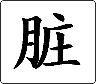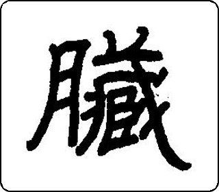 会意字。“月”像肉,“藏”指不外露,表示内脏。简体字月、庄,庄指农民聚居地,表示五脏聚于体内。本义是五脏,即心、肝、脾、肺、肾。臟、