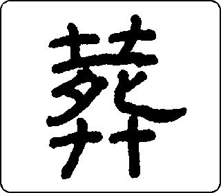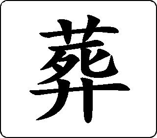 会意字。“死”像尸骨和人,“一”像席子,“茻”像草丛,表示人死后用草席垫着埋在草丛中。楷书艹、死、廾,表示双手将死者埋在草丛中。本义是掩埋死者。