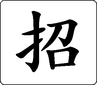 ①打手势叫人或示意:招手│招呼。 ②公开使来:招领│招生。 ③惹处;引起:招引│招祸。 ④承认:招供│招认。 ⑤办法;手段:绝招│耍花招。