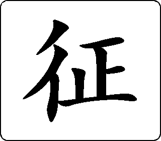 会意字。“彳”像道路,“正”像脚朝着目的地,表示向某地进发,正(zhèng )兼表声。本义是远行。徵今简化为征。