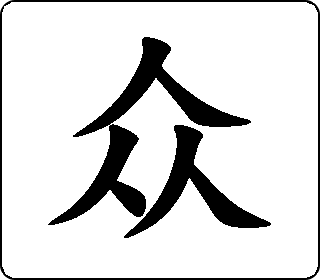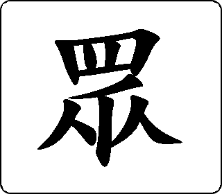 会意字。甲骨文像众人在日下。金文、篆书像眼睛(目)监视众人。楷书加上像眉毛的一撇。简体字像三个人,表示人多。本义是人多。