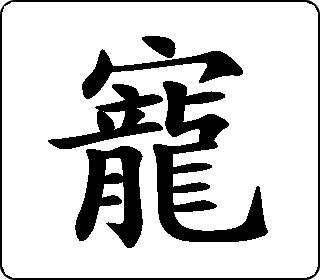 会意字。“宀”像房子,“龍”(龙)像传说中的龙,龙是神兽,象征显贵,表示显贵的房子。寵简化为宠。本义是显贵的房子。引申为偏爱、溺爱。