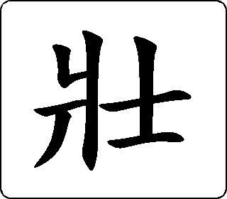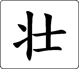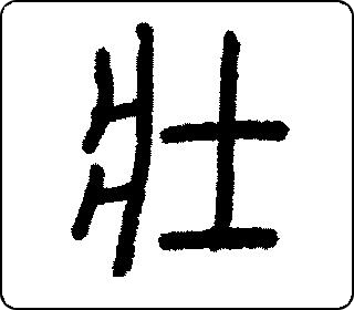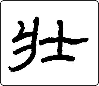 会意字。“士”像斧子,指男子汉;“爿”像床,表示人体像木床般长大。壯简化为壮。本义是人体高大。引申为强壮。