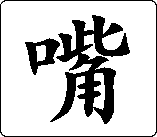 ①口;吃东西、说话的器官:嘴巴│嘴唇。 ②说话:嘴甜│插嘴。 ③形状或作用像嘴的东西:烟嘴│壶嘴。