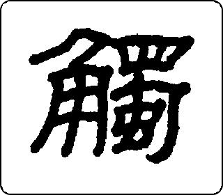 会意字。“角”像动物的角,“蜀”像虫,表示兽以角抵物与虫一屈一伸前行的动作相似。 简体字表示虫类以角或须来触物探路。本义是用角触物。