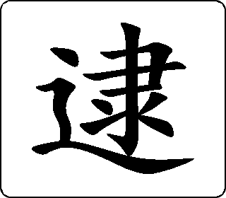 会意字。金文像手抓住尾巴,表示追上逮到。篆、楷书“辶”(辵)像路和脚,“隶”像手抓住尾巴,表示一路追赶后逮住。本义是及、到。引申为捉拿。