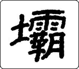 会意字。“土”本像地上有堆土,“霸”有强占义,表示用土石筑成强占河道截住水流的建筑;霸(bà)兼表声。简体字“土”表示垒土成坝,“贝”生于水中,表示坝是拦截水流的建筑。本义是水坝。