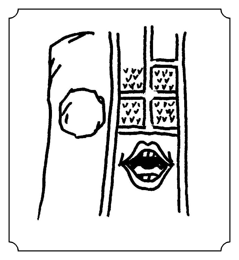 会意字。“石”像山崖下有块石头,表示用石块砌成的石屋;“周”像农田和口,有周密义,累石成屋须密合无间才不会坍塌。本义是石屋。引申为碉堡。