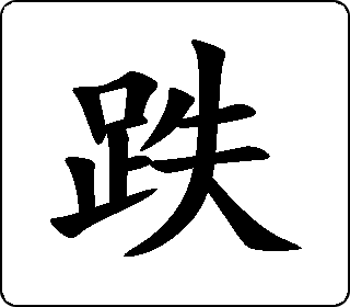 会意字。“足”像膝和脚,“失”像东西从手上掉落,表示失足跌倒。本义是摔倒。