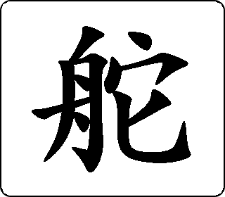会意字。“舟”像船,“它”古文字像蛇,表示舵摆动像蛇昂首摇尾的样子。本义是船尾用来控制船航行方向的装置。