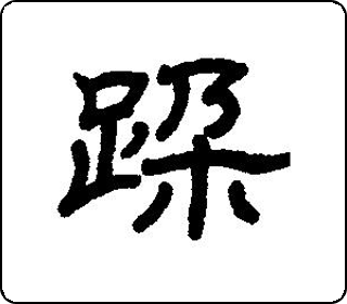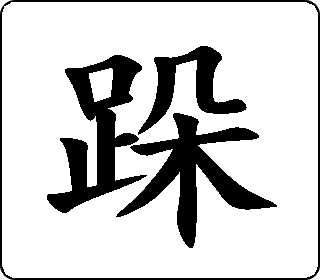 会意字。“足”像膝和脚,“朵”指花朵,表示脚用力向下踏地,朵(duǒ)兼表声。本义是用脚蹬地。