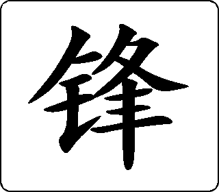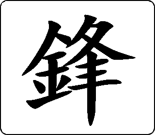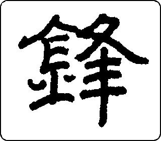 形声字。金表意,像箭头、斧头和矿石,表示金属兵器的尖端;篆书逢(féng)表声、楷书夆(féng)表声,皆有相逢义,表示与敌相逢的兵刃。鋒简化为锋。本义是兵器的尖端。