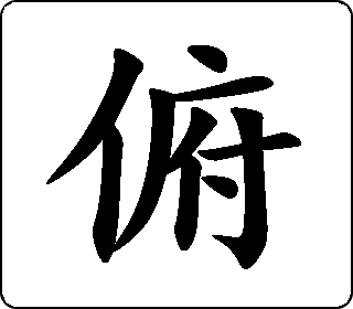 形声字。亻表意,像人,表示人把头低下;府(fŭ)表声,府是官员办公之地,人们见了官员常低下头表示敬意或畏惧。本义是向下低头。