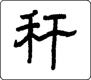 会意字。“禾”像谷类植物,“干”像植物的主干,表示禾的茎干,干(gān)兼表声。本义是庄稼的茎。