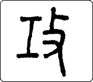 形声字。攴(攵)表意,像手持器械,表示攻打;工(gōng)表声,工像斧子,有善于义,表示善于用计进攻方可取胜。本义是攻打。