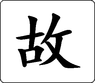 ①从前的;过去的:故居│故事。 ②原因:缘故│无故。 ③意外的事:事故│变故。 ④有意;存心:故意。 ⑤死亡:病故。 ⑥所以;因此:故能胜任。