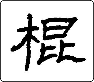 形声字。木表意, 像树, 表示木棒; 昆(kūn)表声,昆像太阳(日)照在两人(比)头上,有高意,表示棍是长条形的。本义是棍棒。