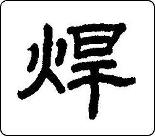 形声字。火表意,像火焰,表示用火熔化金属来焊接;旱(hàn)表声,旱像日照杆上,有干旱义,表示熔化的金属干了东西就焊接住了。本义是焊接。