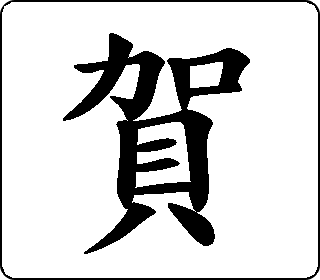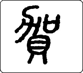 会意字。“力”像农具,表示庆贺要花精力;“口”像张开的口,表示开口祝贺;“貝”(贝)像用作钱币的贝壳,表示庆贺要花钱财。賀简化为贺。本义是送礼表示庆祝。
