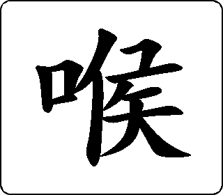 形声字。口表意,像张开的口,表示喉与口相通;侯(hóu)表声,侯是箭射的箭靶,表示喉是食物、空气等通过的喉咙。本义是喉咙。